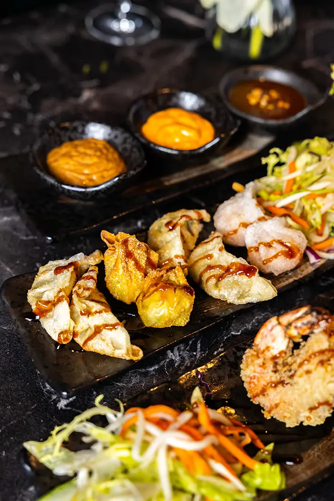 Liebevoll bis ins Detail abgestimmte asiatische Fusionsküche, von erfahrenen Köchen mit höchster Sorgfalt zubereitet, erwartet Sie in einem modernen Wohlfühl-Ambiente.